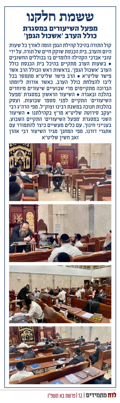 חברי הכולל בשיעורים ובלימוד עם חברותות תשפ"ו